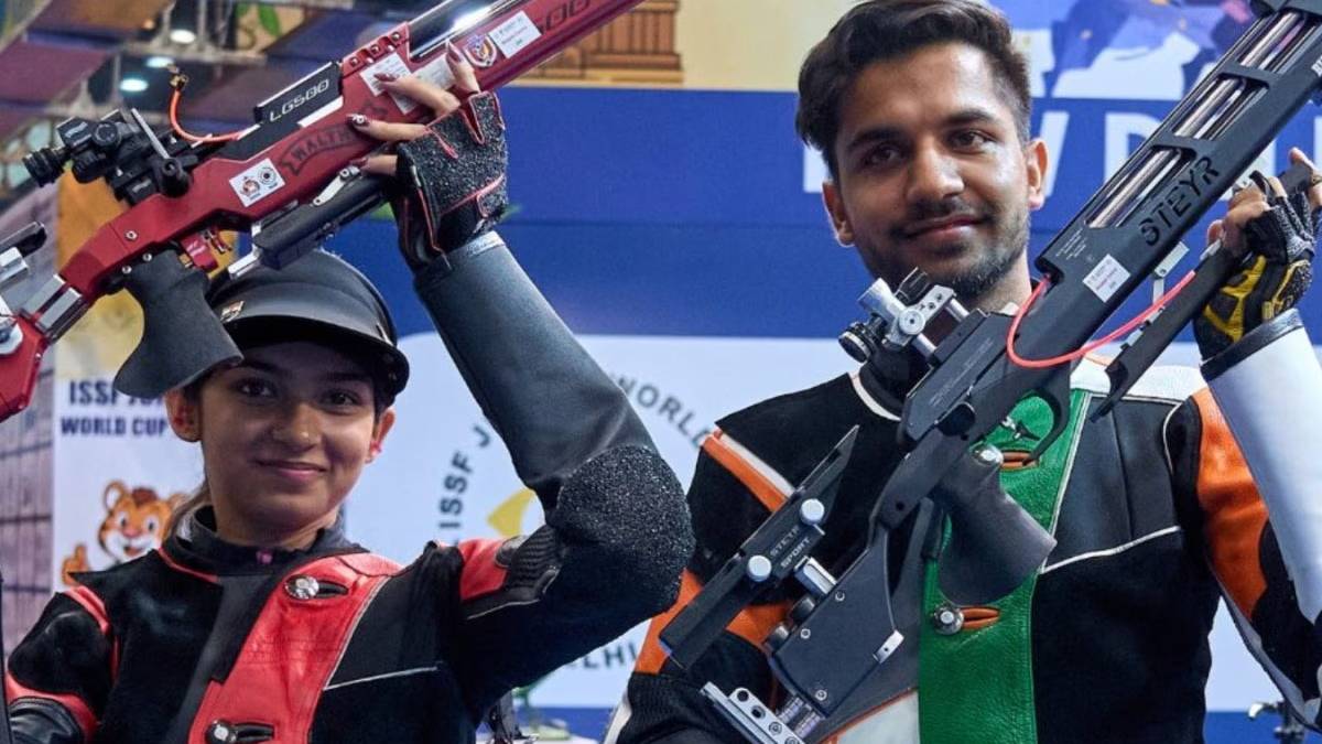नवी दिल्ली : कनिष्ठ विश्वचषक नेमबाजी स्पर्धेत भारताच्या ईशा टाकसाळे आणि हिमांशू जोडीने एका रोमांचक लढतीत मंगळवारी मिश्र सांघिक गटात भारताला सुवर्णपदक मिळवून दिले. दरम्यान, ट्रॅप प्रकारात भारताचा विनय प्रताप चंद्रावत कांस्यपदकाचा मानकरी ठरला. भारताने आतापर्यंत २३ पदकांसह पदकतालिकेत अग्रस्थान कायम राखले आहे.
